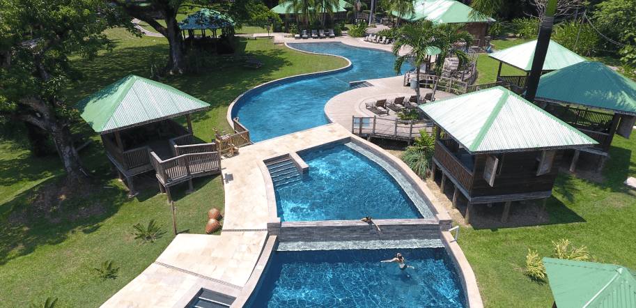 - Seven tiers of cascading waterfalls for swimming and relaxing.
